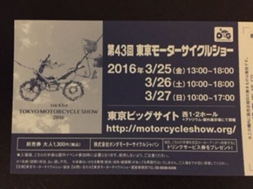 ↑じゃーん!東京モーターサイクルショー2016のチケットをバイク屋さんがくれたよ(≧∇≦)bという訳で、前からお誘い頂いていたFZS1000のご夫婦と一緒にビッグサイトへ行ってきたのだ!今日はモーターサイクルショーの後でもんじゃとビールを嗜む約束なので、エ…