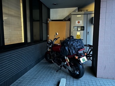 チェックアウト後に宿前で準備してたらピタッと雨が止んで出発。晴れ男りょうさんの再来!(๑˃̵ᴗ˂̵)و